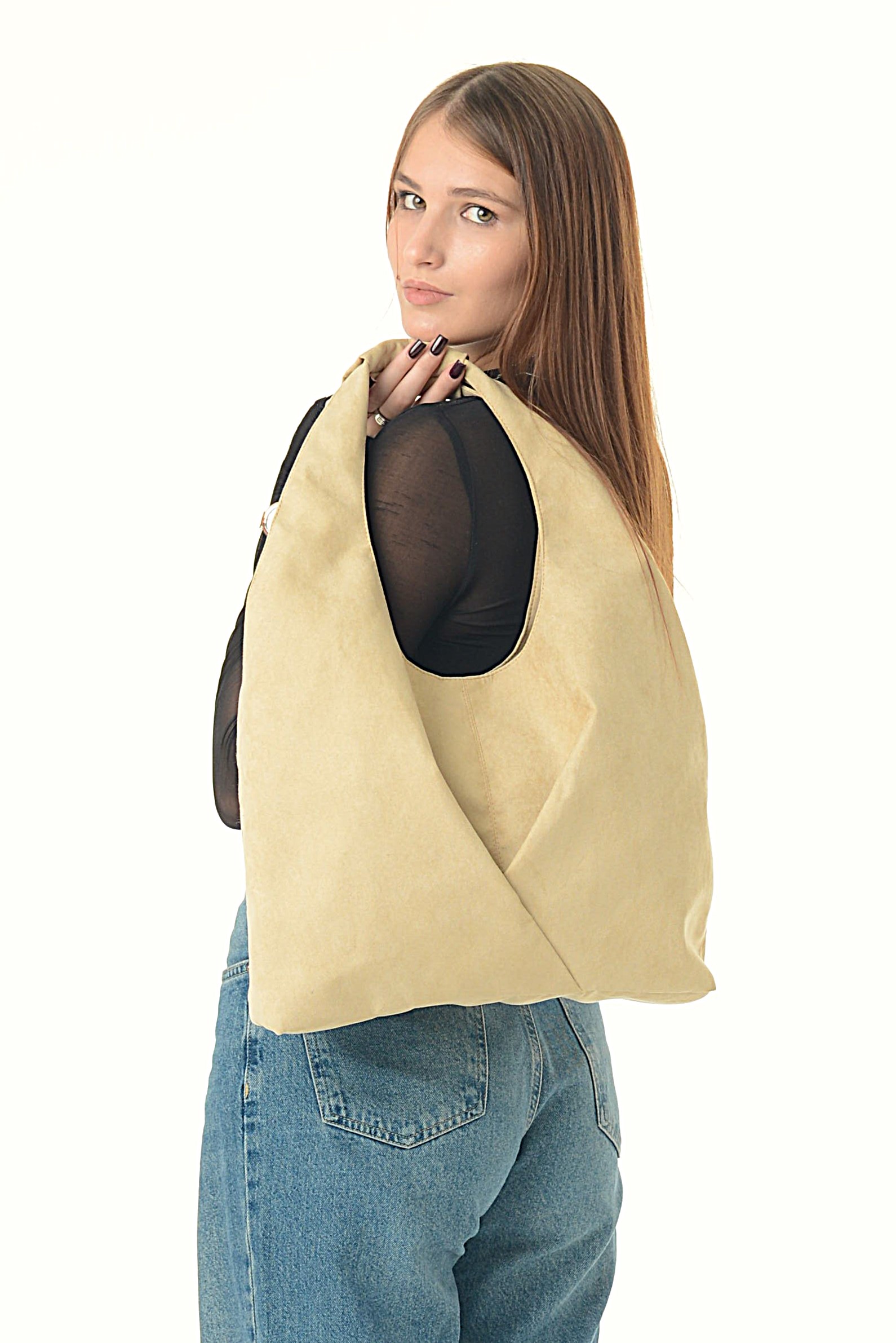 Сумка -Шоппер Габби!Стильная женская сумка из эко замши, велюра на плечо большая и удобная. Благодаря своей форме вместительный мягкий шоппер остается всегда компактным. Уплотненное дно помогает держать форму даже в пустом виде. Вмещает подросткам для учебы документы а4. Шоппер удобен для прогулок, похода в магазин, на работу, пляж, отдых, как ручная кладь в самолет, фитнес или учебу.Прочные ручки выдержат любой вес! Отлично смотрится и удобно носится на плече или в руке.