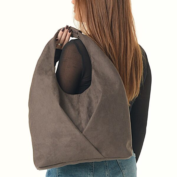 Сумка шоппер на плечо для женщин из искусственного велюра станет отличным аксессуаром в осенне-зимний период времени года, благодаря своей легкости практичности застежки на магните, а так же стильному минималистичному и строгому внешнему виду. Благодаря форме треугольника шоппер подчеркнет красоту и утонченность. С ней вы будете отлично выглядеть в любой момент, будь то поход на работу, на учебу в школу или университет или ресторан. Сумочка комфортна в носке на запястье или руке. Основное отделение прекрасно подойдет для ноутбука, планшета, ежедневника, документов, косметики. Также шоппер прекрасно подходит для переноски одежды для йоги, а так же её можно брать с собой для поездок на дальние расстояния. Премиальное качество искусственного велюра, поможет вашей сумке прослужить долгий период времени, при этом она легко чистится.